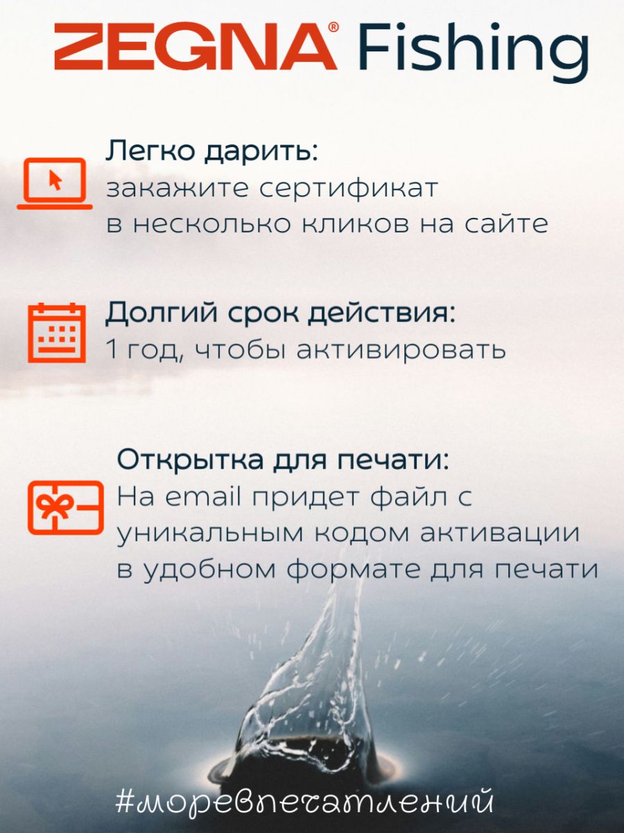 Электронный подарочный сертификат ZEGNA FISHING (#моревпечатлений) на сумму 15000рублей